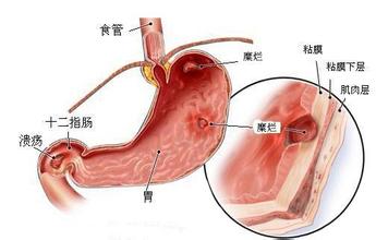 三:导致胃穿孔。由于糜烂面积扩大,胃体功能进一步失调,胃酸分泌过多,加大对黏膜下组织的腐蚀,较终穿透浆膜导致胃穿孔和急性胃出血。